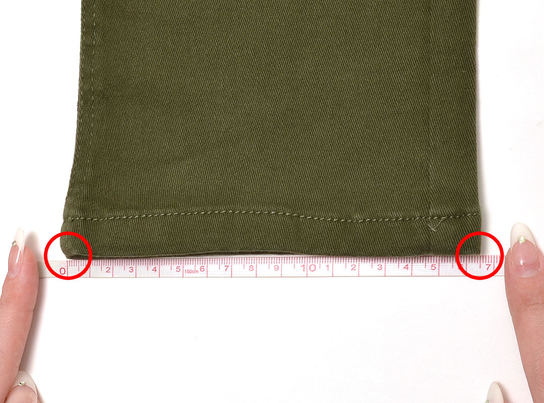 裾を揃えた左右の長さ。