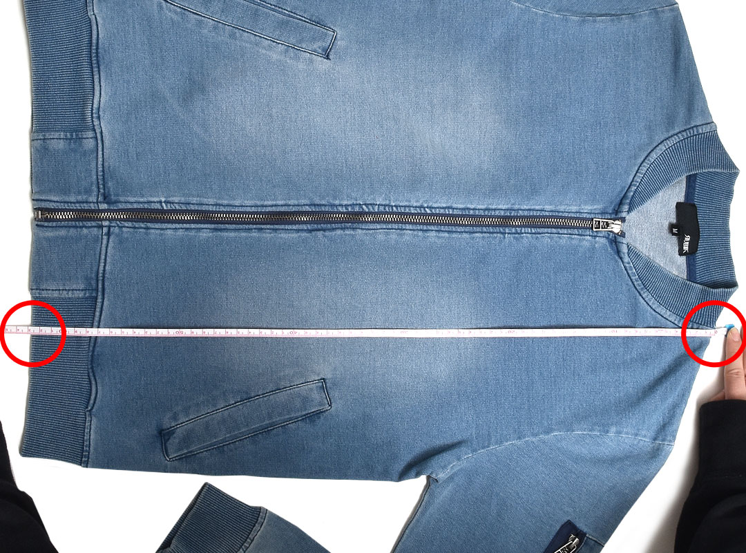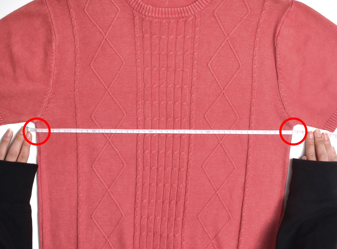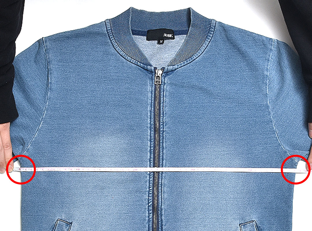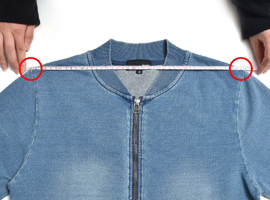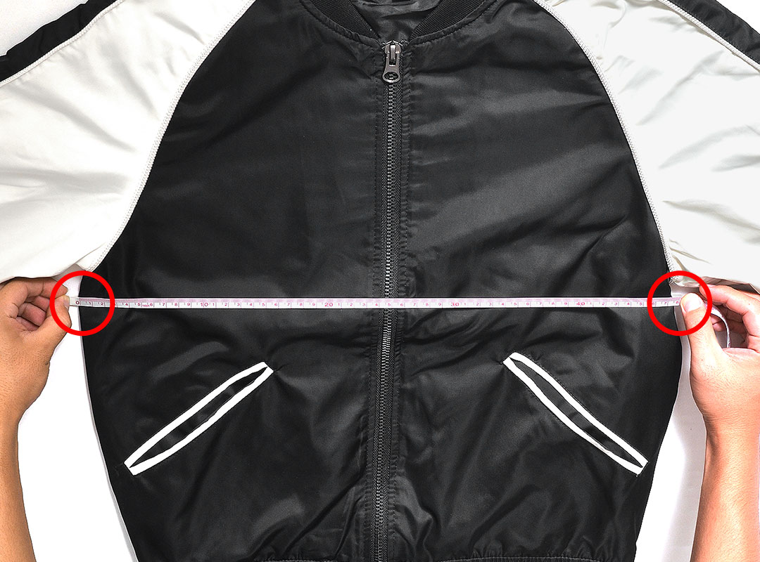 左の脇下1cmから、右の脇下1cmまでの長さ。