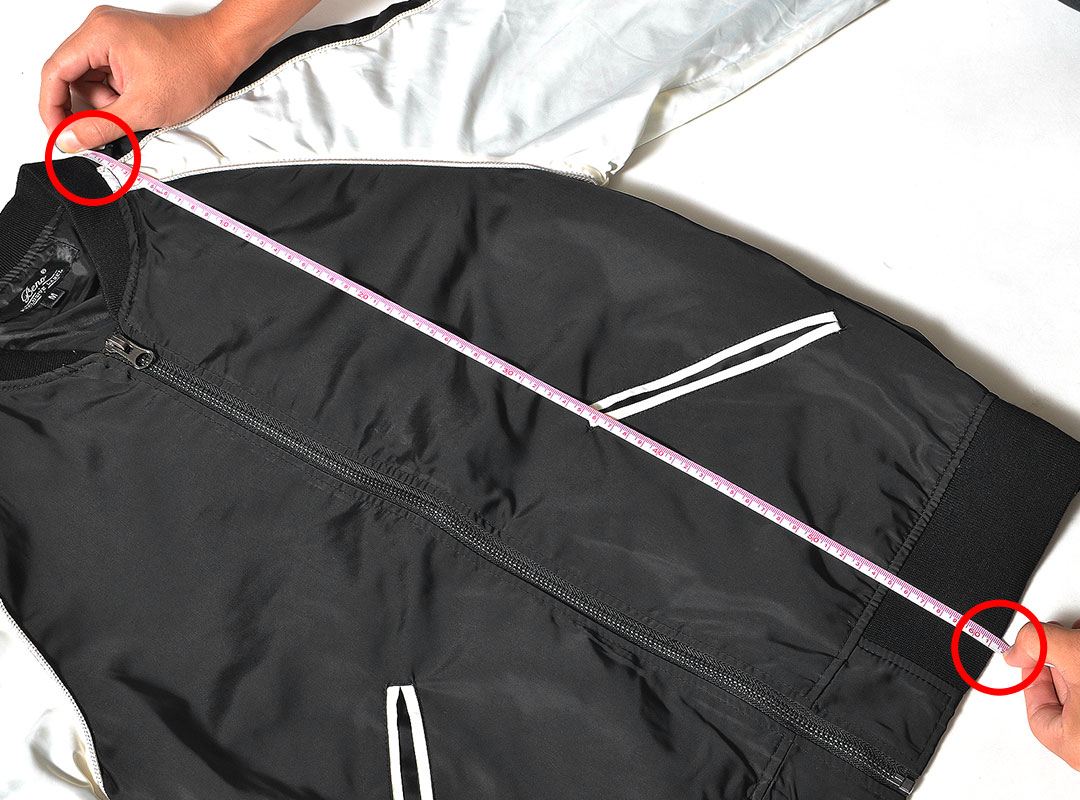 左右の袖の縫い合わせの長さ。