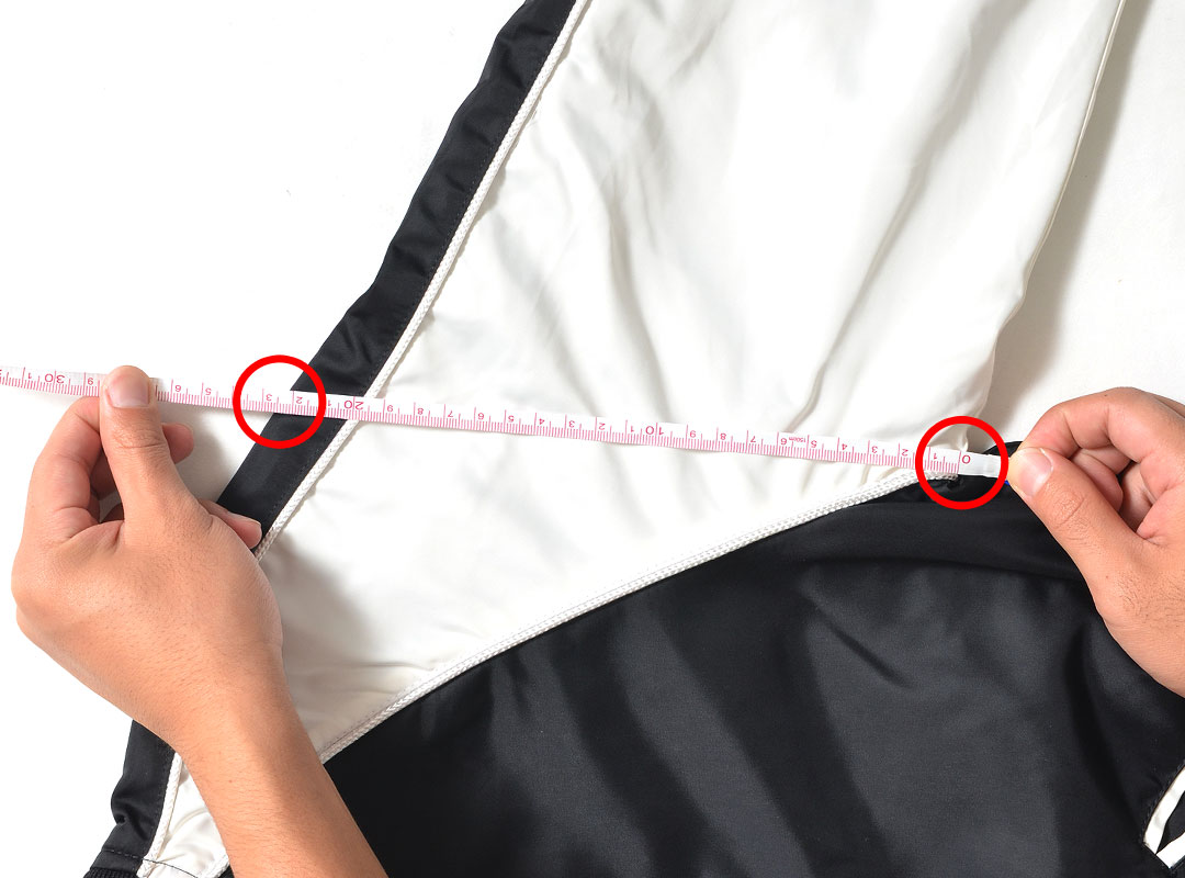 縫い目が十字に交差した個所から、端までまっすぐ測った長さ。