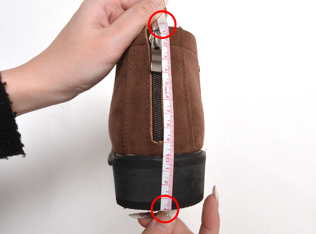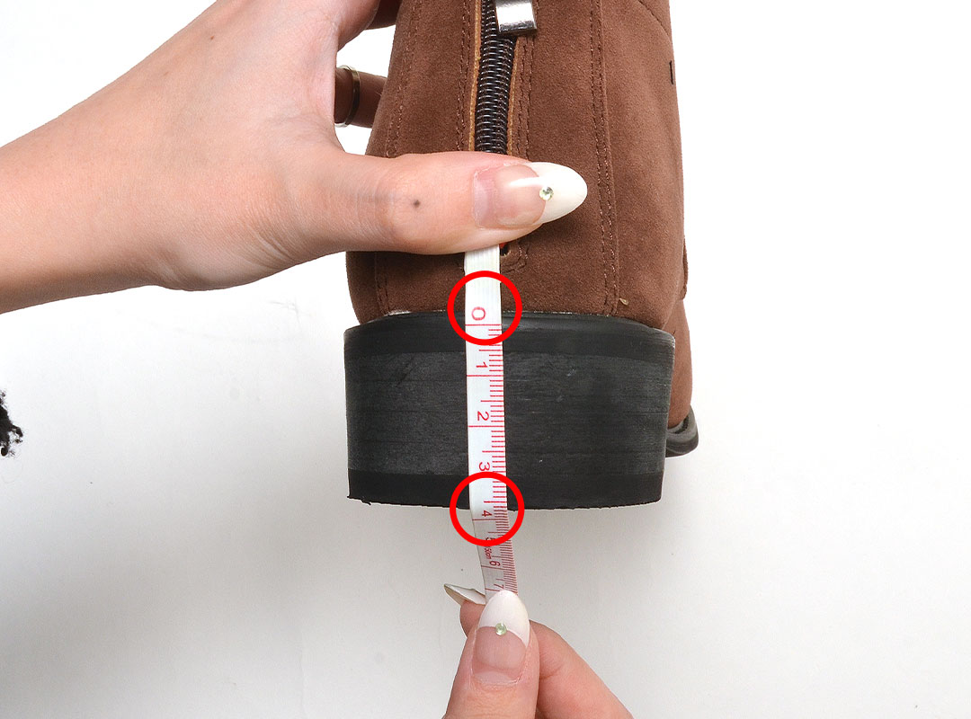 かかと部分の一番上から、一番下まで垂直に測った長さ。
