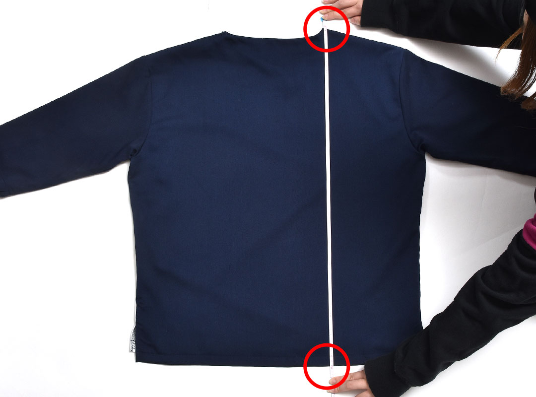 首元の一番高い所から、一番長い袖までの長さ。