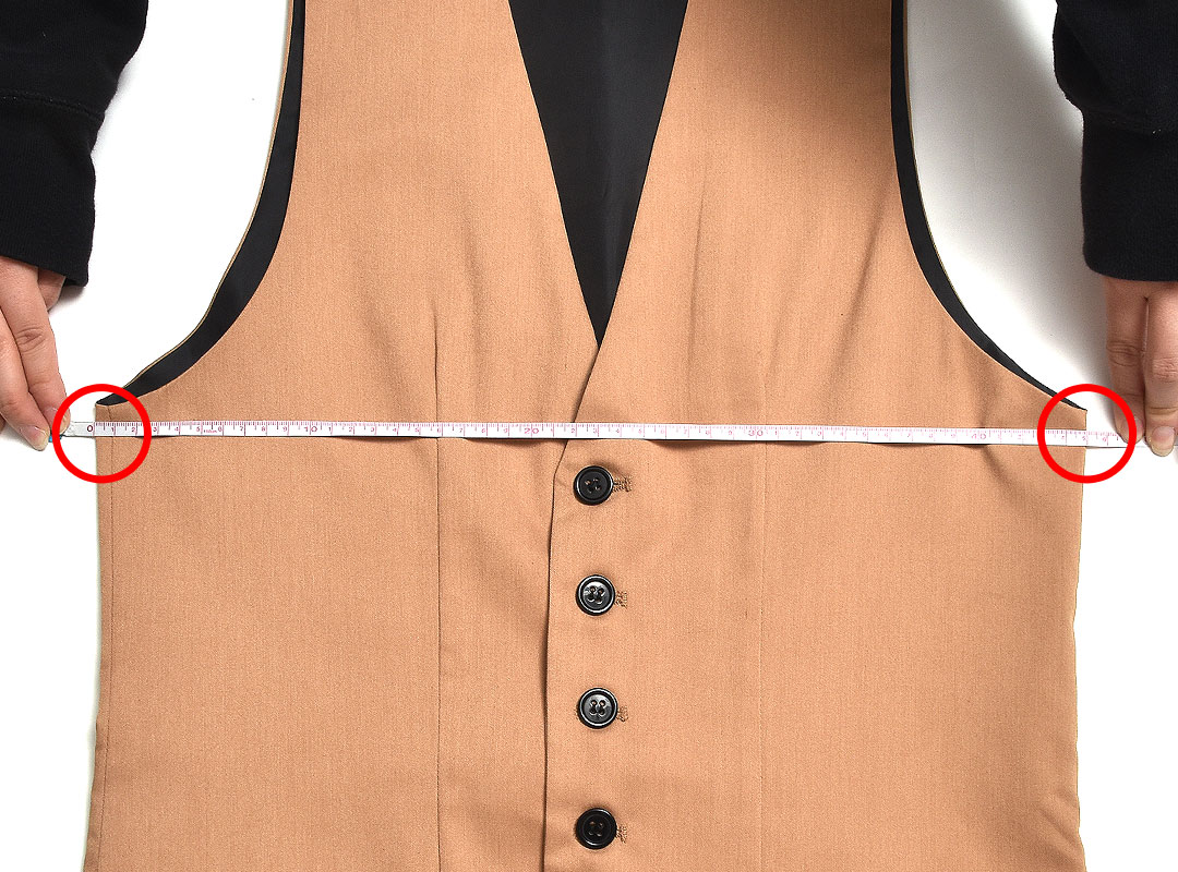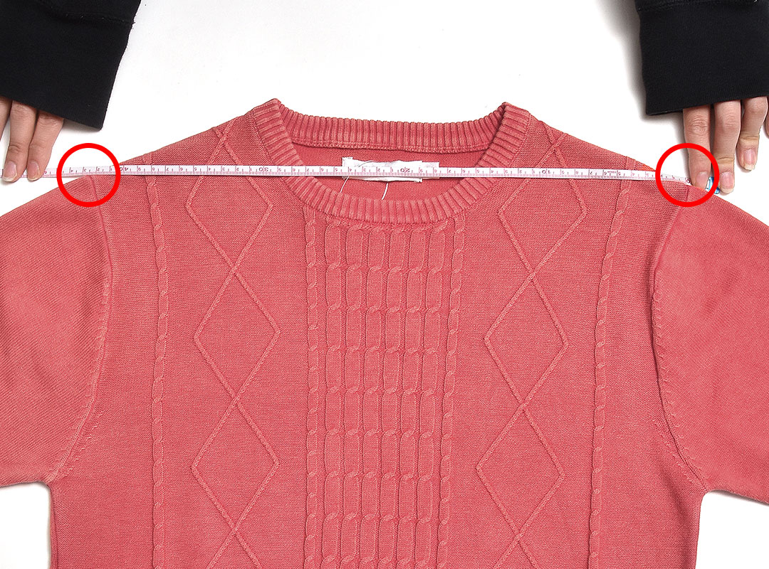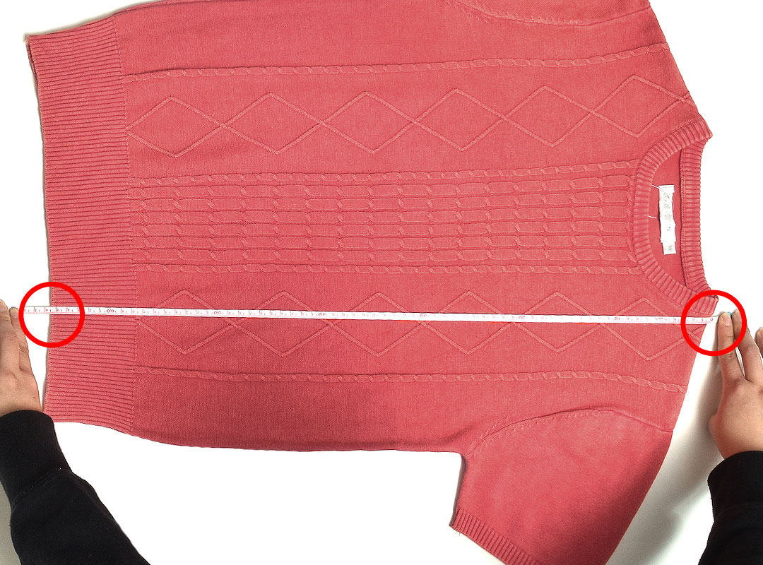 左の脇下1cmから、右の脇下1cmまでの長さ