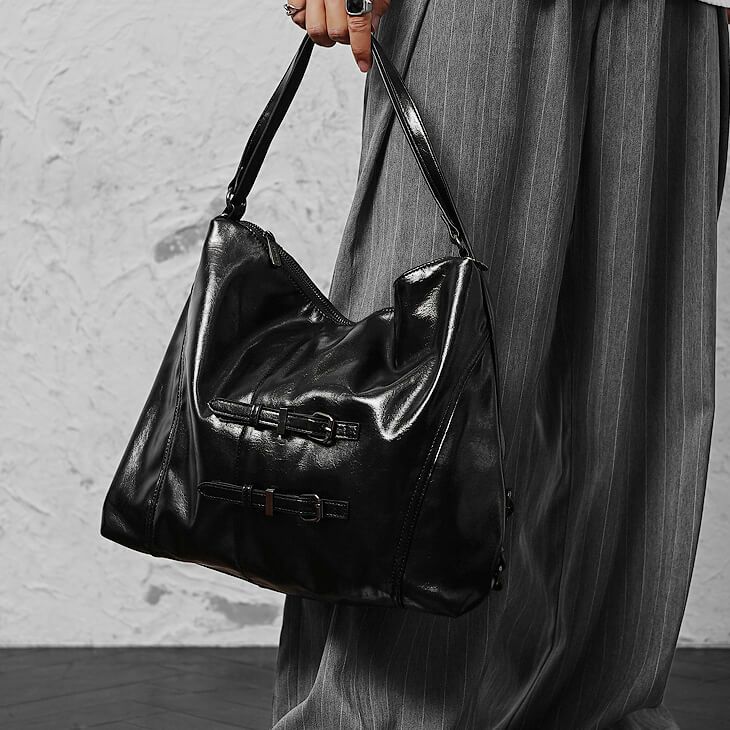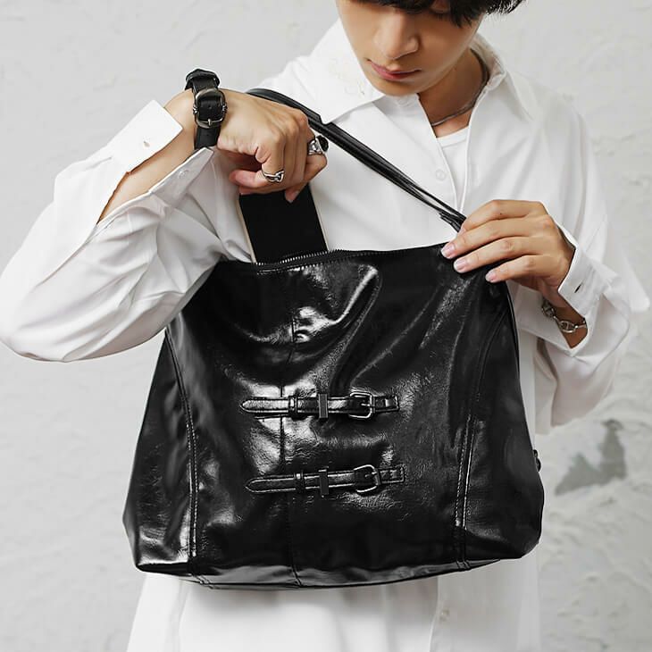 【送料無料】シンセティックレザービッグショルダーバッグ